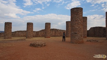 Zeremonienhalle mit den Säulen ist noch gut erhalten, einzig das Dach