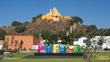 Cholula, einem Vorort von Puebla. Einst die grösste Pyramide der Welt,