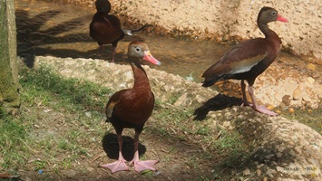 Vogelvoliere. Dort drin haben wir die Gelegenheit, die schönen roten und