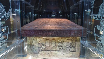 ein Sarkophag ausgestellt ist der in der Anlage gefunden wurde.