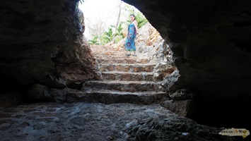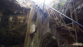 man nur eine Holztreppe, die in die Tiefe führt. Erst auf halbem Weg