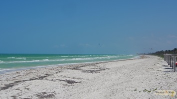 schneeweisem Sand. Zwar hat es wie an jedem öffentlichen Strand viel