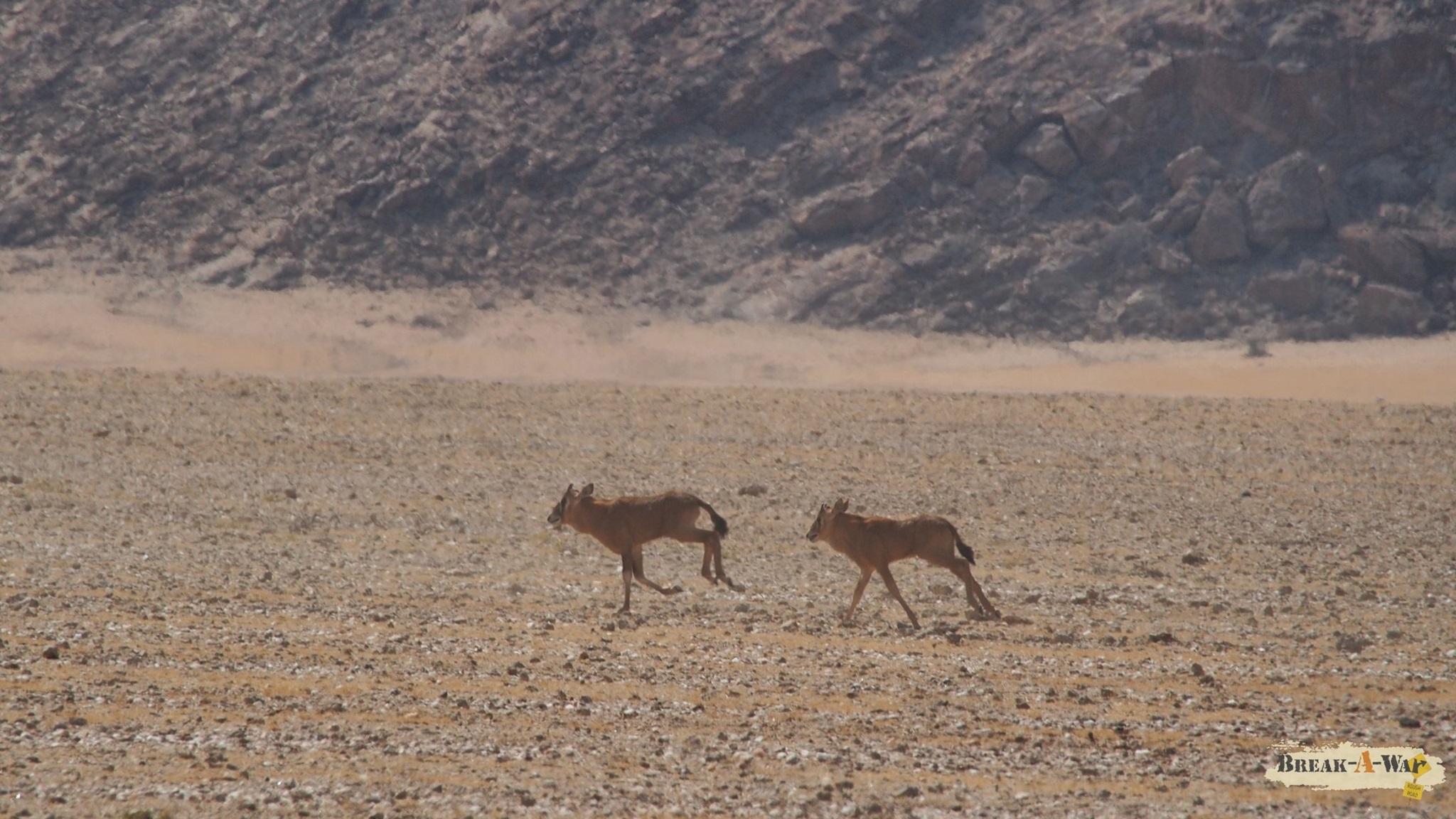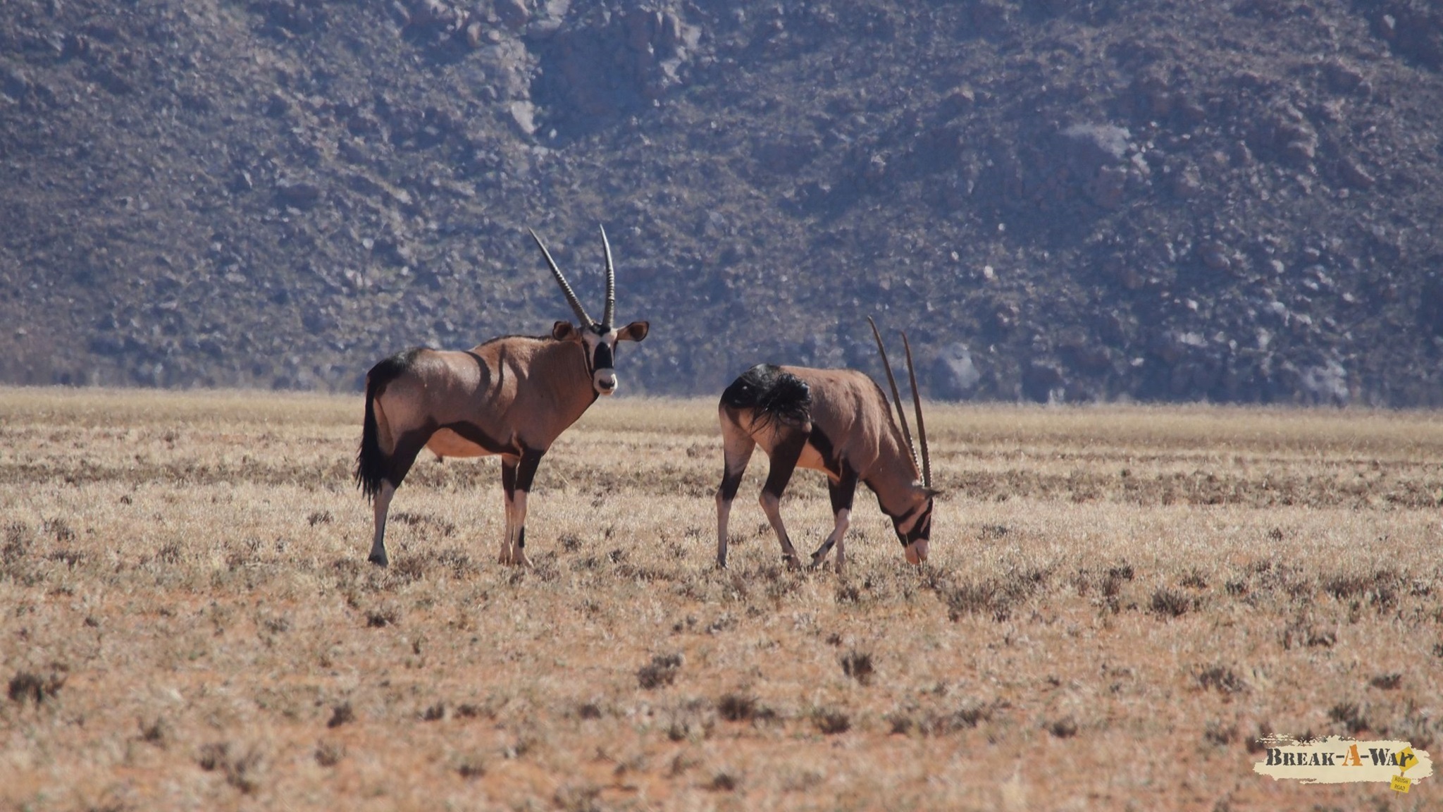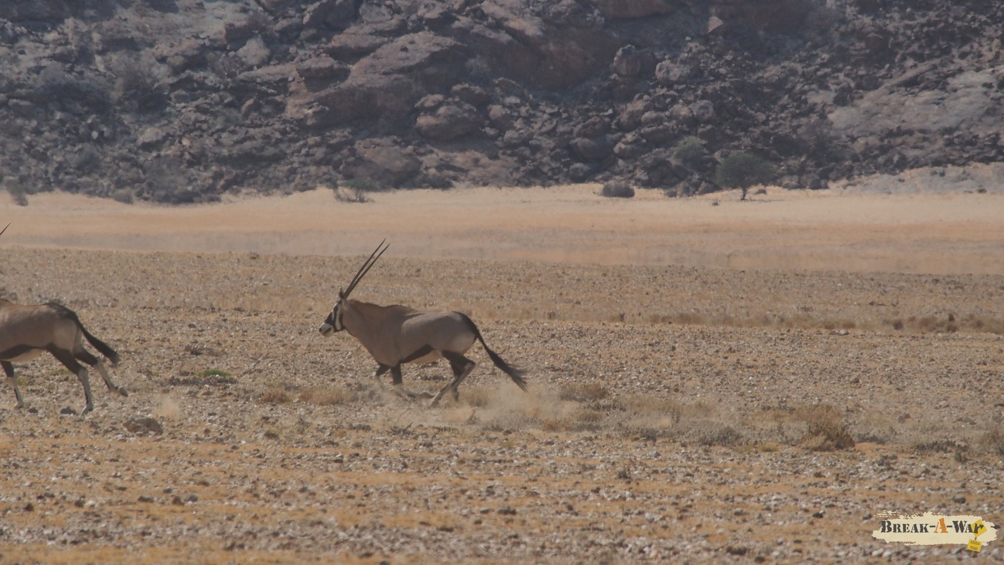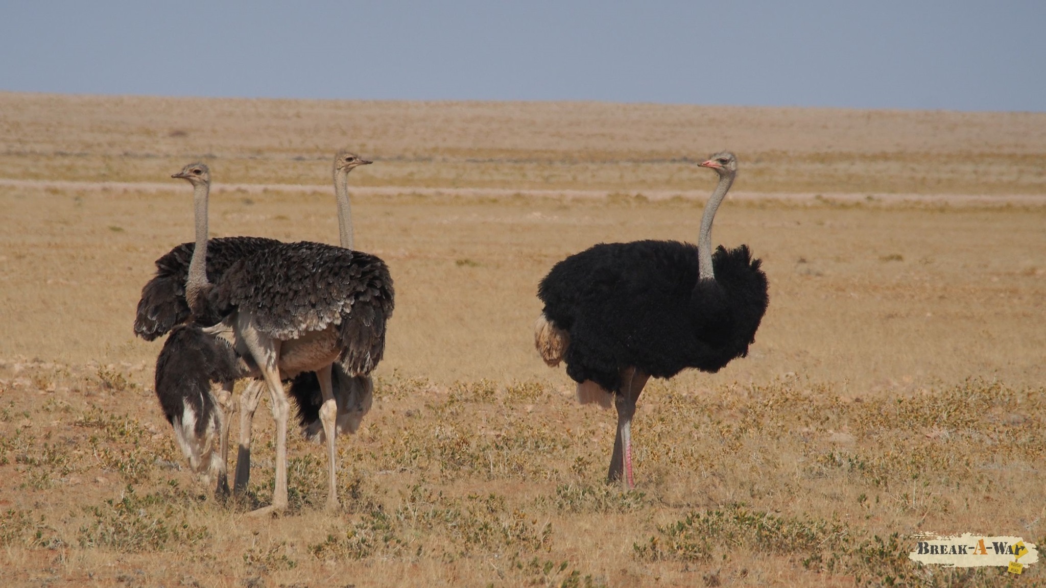 Strausse und Oryxe mit Nachwuchs beobachten und als wir dann durch die Tinkas Flats