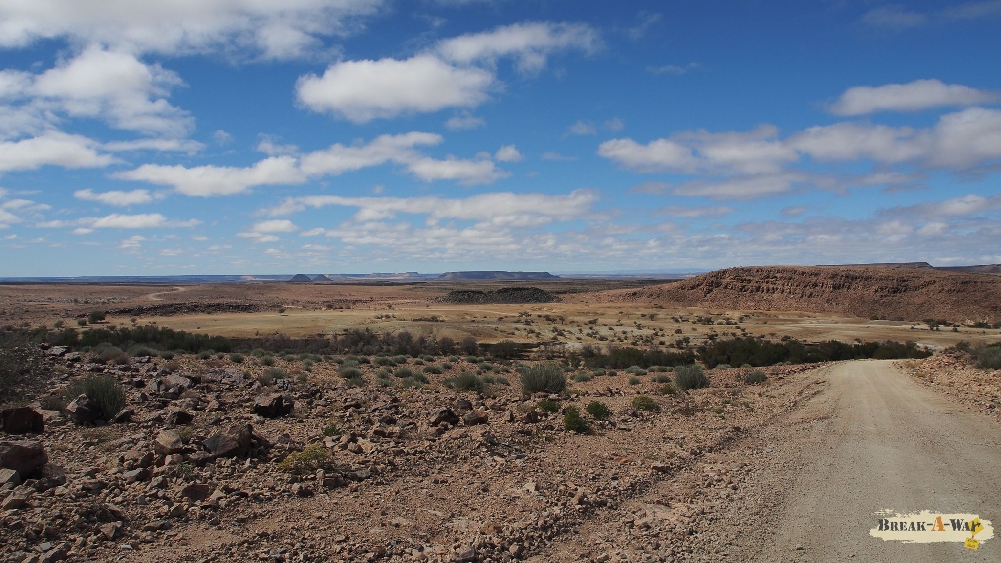 werden. Auf der üblen Wellblechpiste gehts nach Solitaire, egal wie