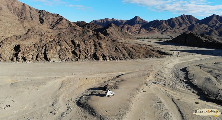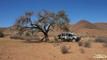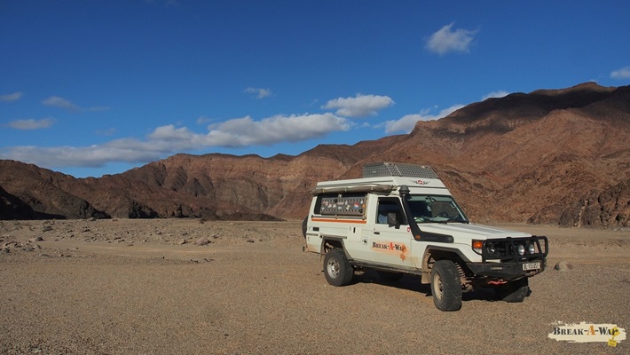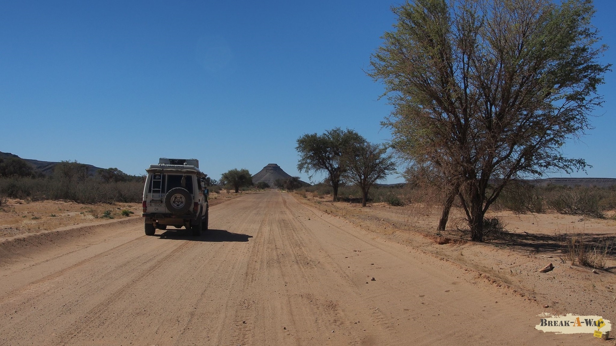 Jetzt kanns losgehen mit den Abenteuern in der Einsamkeit der Wüste. Nach dem Kuiseb-Pass verlassen wir die Touristenroute und tauchen ein in die Wüste. Unser Ziel ist der Campplatz am Mirabib-Inselberg,
