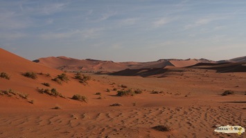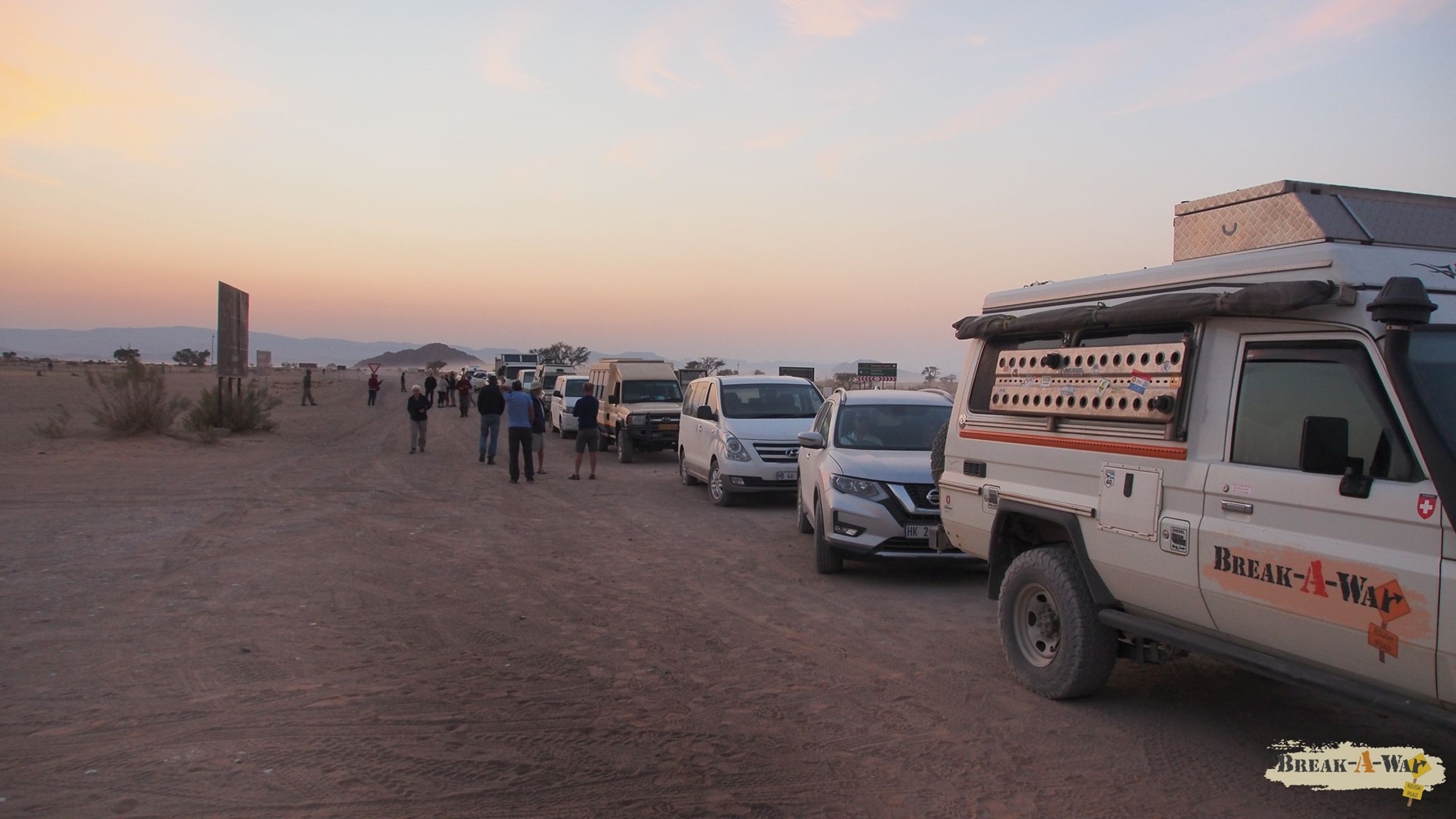 steht die Sonne schon tief über der kargen Wüstenlandschaft und wir