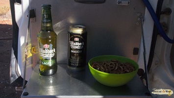 Einkaufsmöglichkeit gefunden und so brutzeln wir halt die letzte Boerewoer (Bauernbratwurst) mit ein paar Bratkartoffeln, bevor wir uns ans Aussortieren von mindestens 100 Fotos machen.