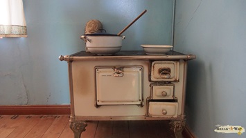 Waschschüsseln, ein alles Kofferradio, der Holzherd von anno dazumals