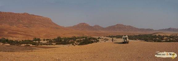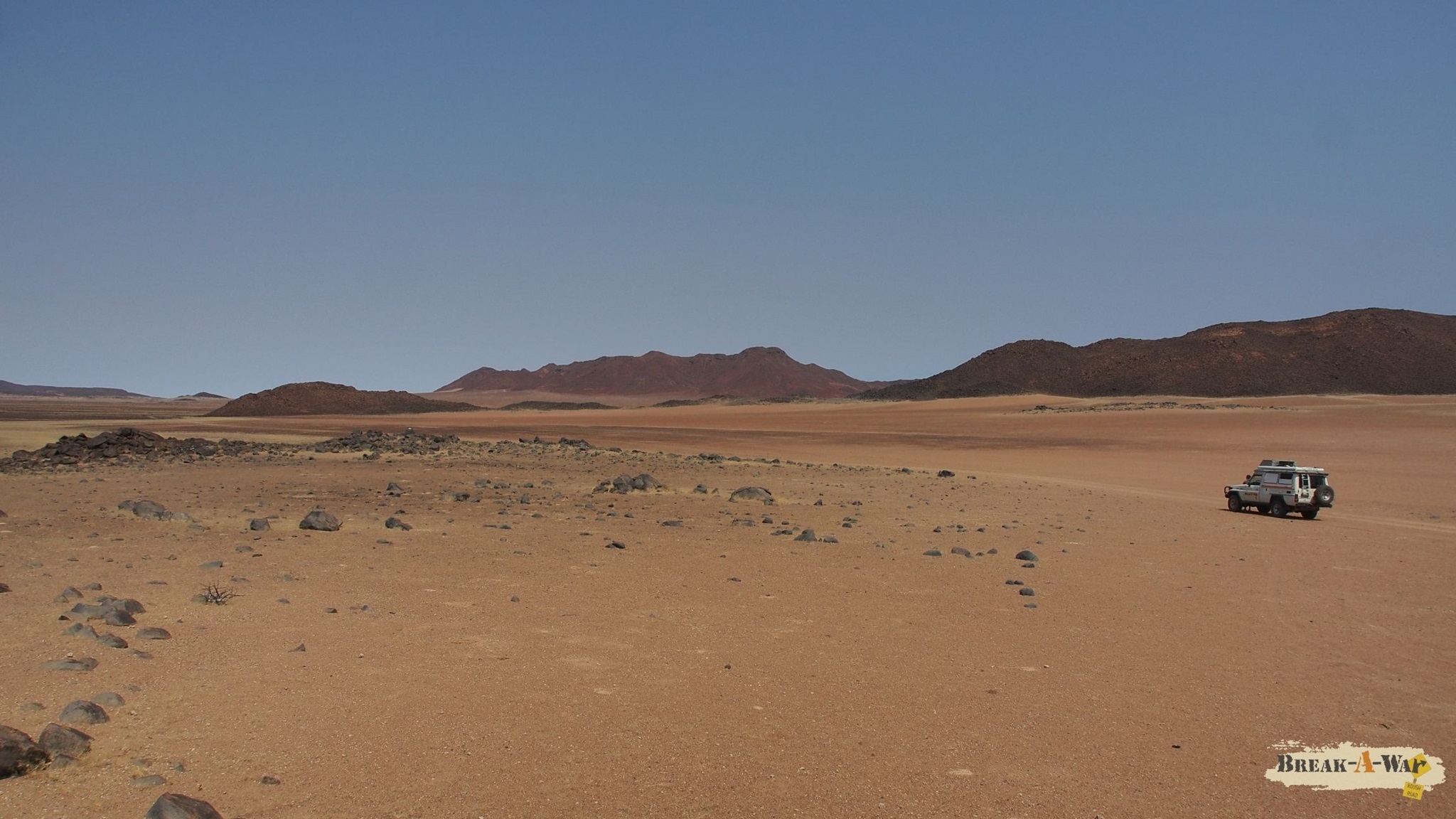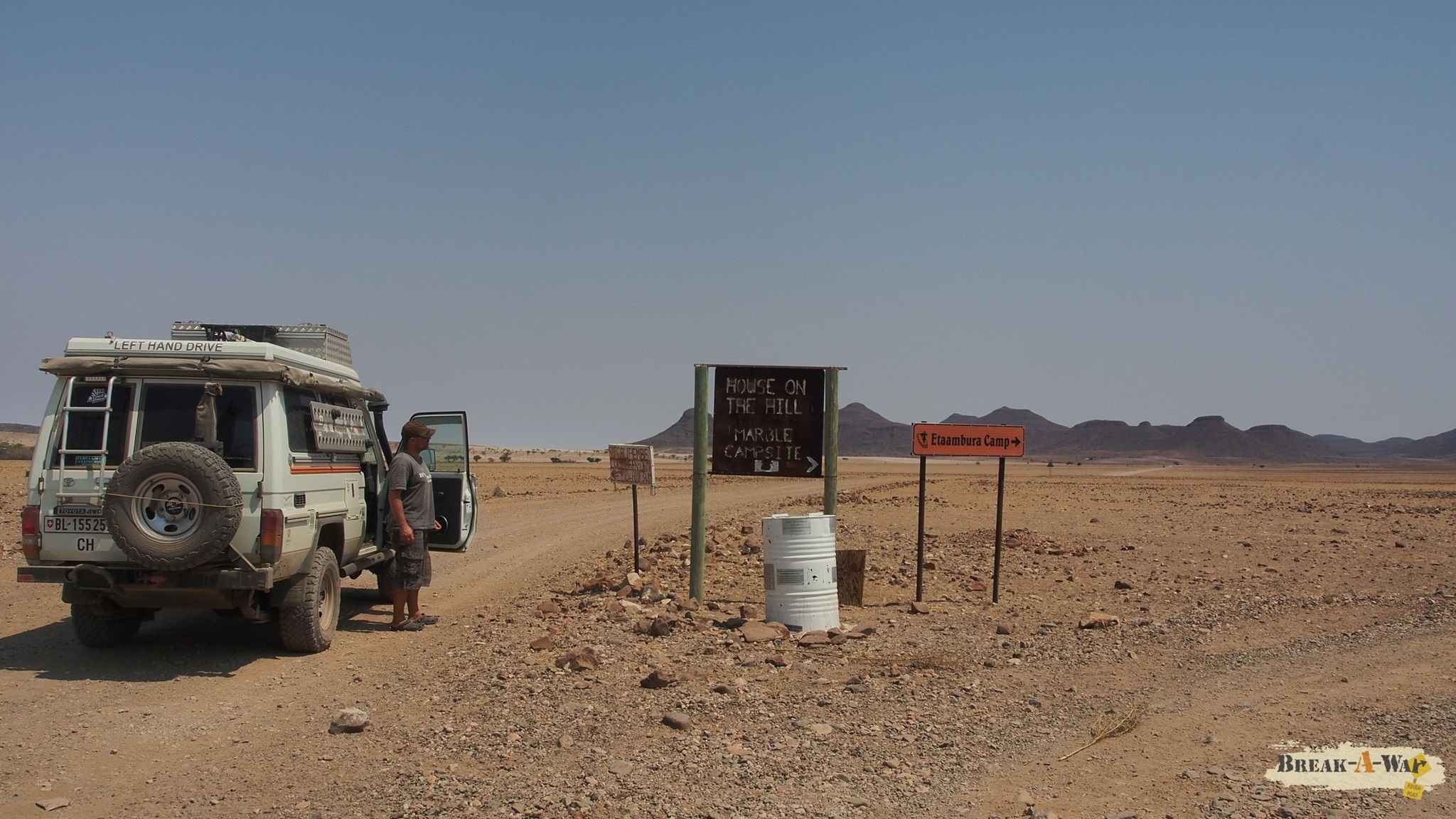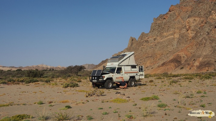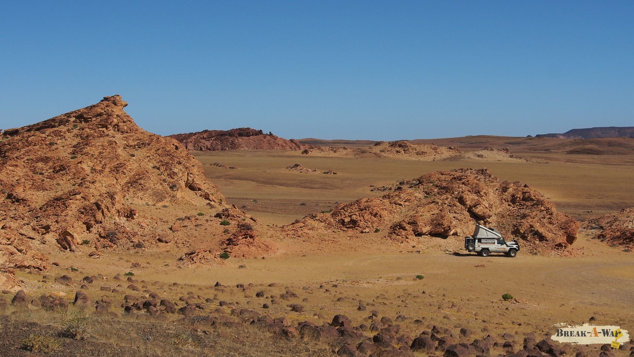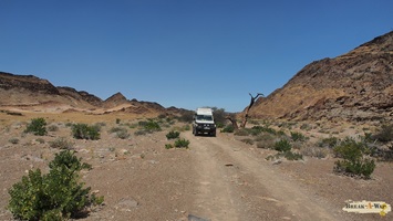 Auf steinigen mühsamen Pisten verlassen wir das Marienflusstal bei der Roidroom (rote Tonne). Wir müssen einen weiten Umweg nach Süden fahren, der direkte Weg nach Osten führt über den Van Zyls-Pass, doch