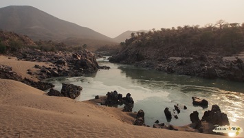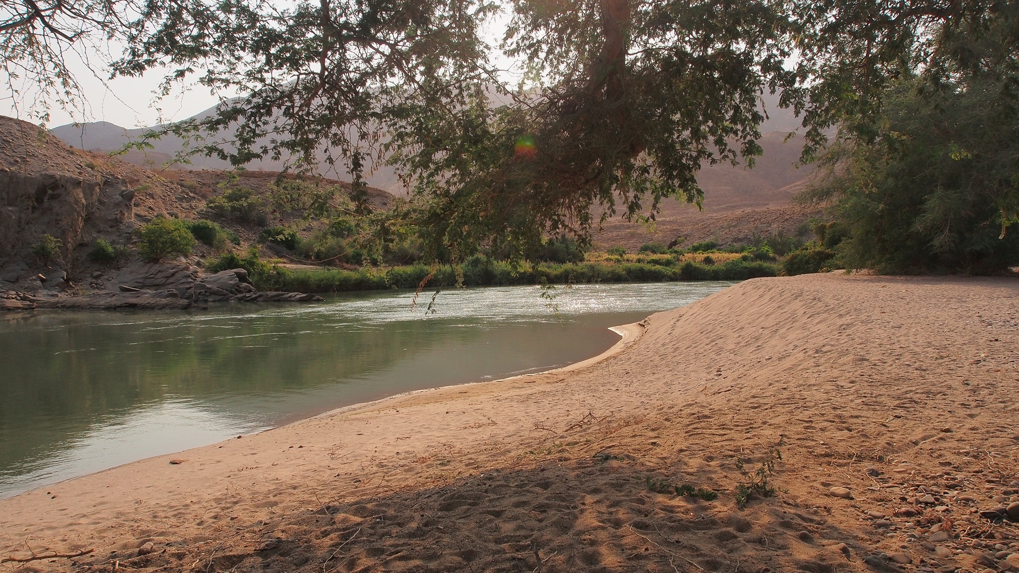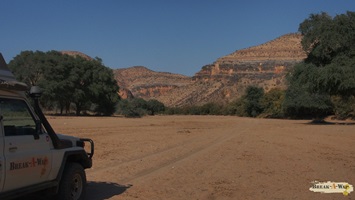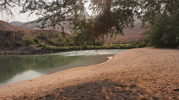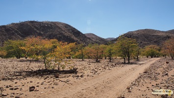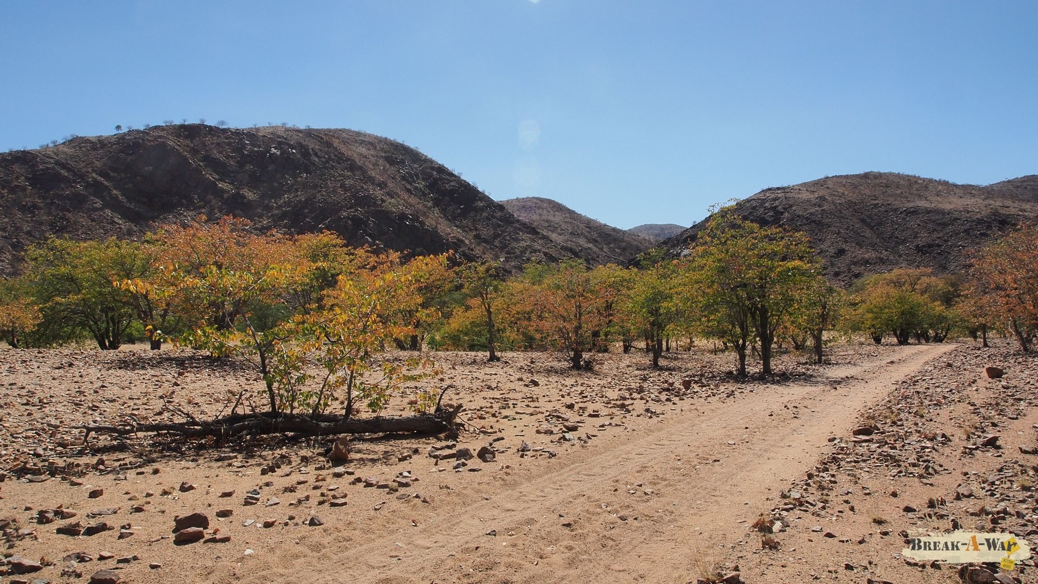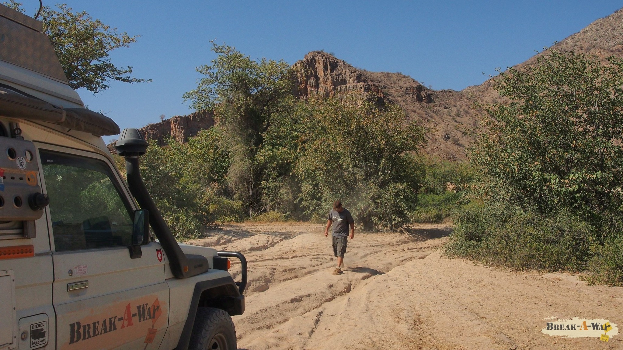 tiefsandigen Pfaden ganz ans Ende des Tals, bis wir den Kunene