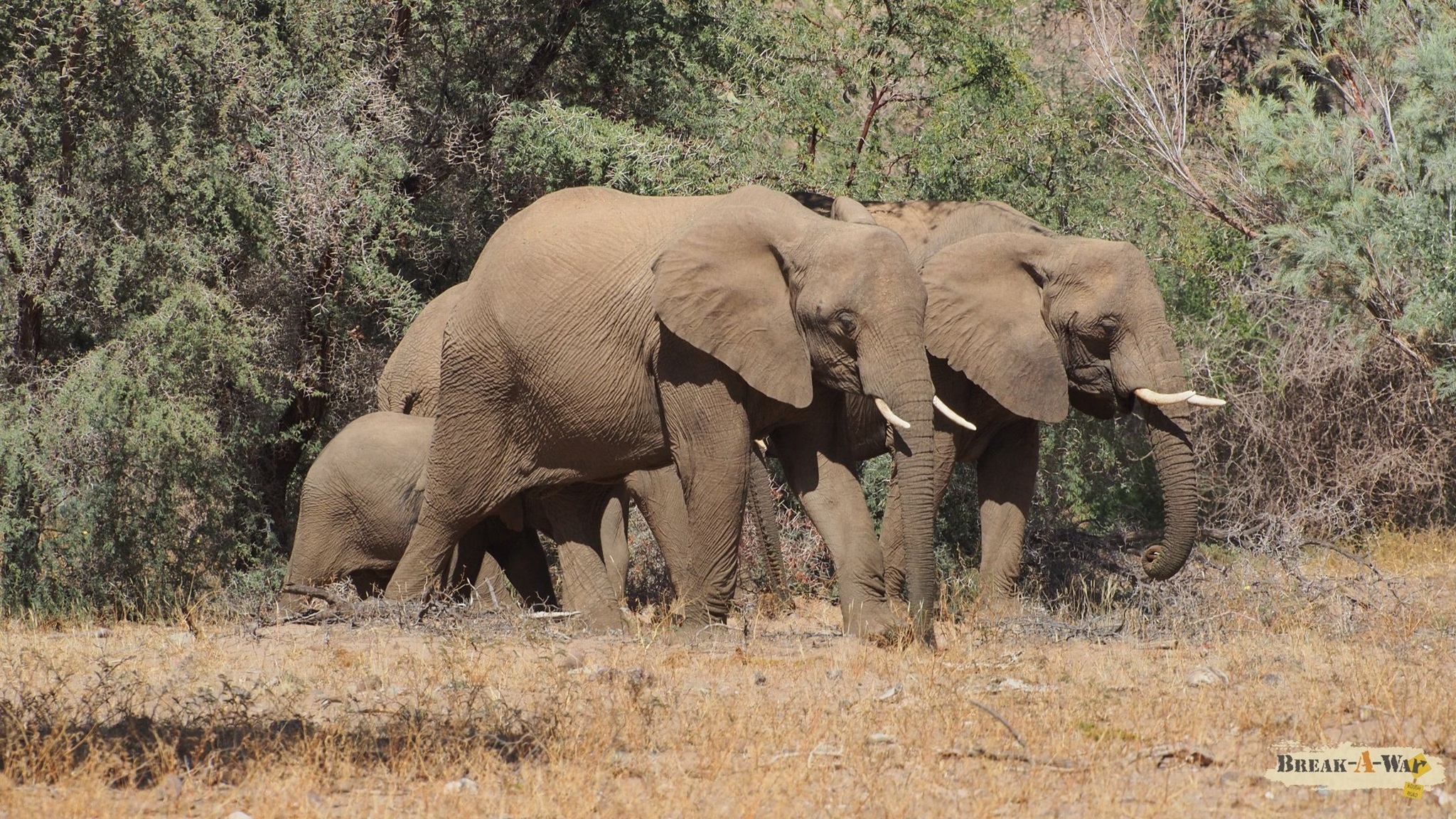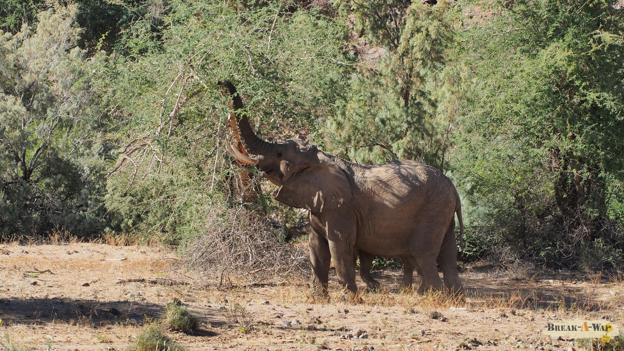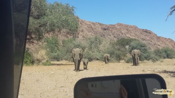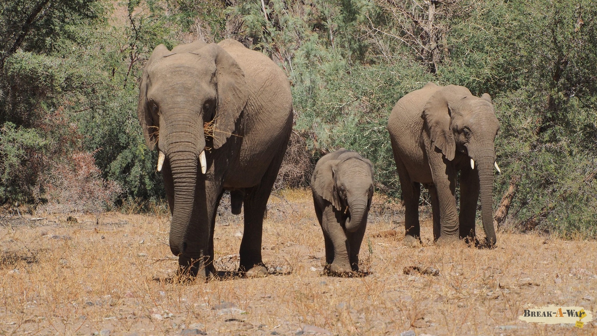 und auch der Wüstenelefanten, die hier völlig frei in der kargen