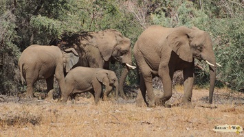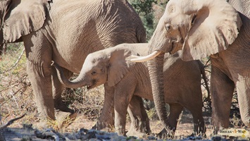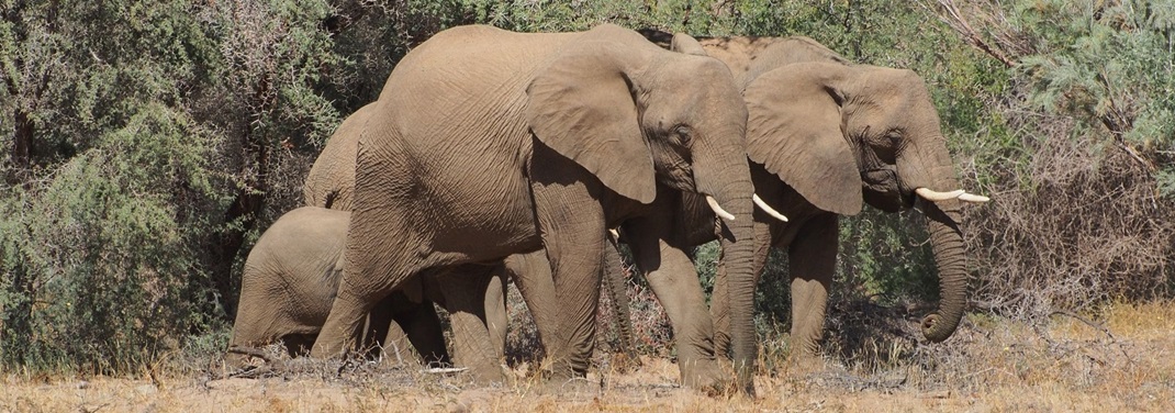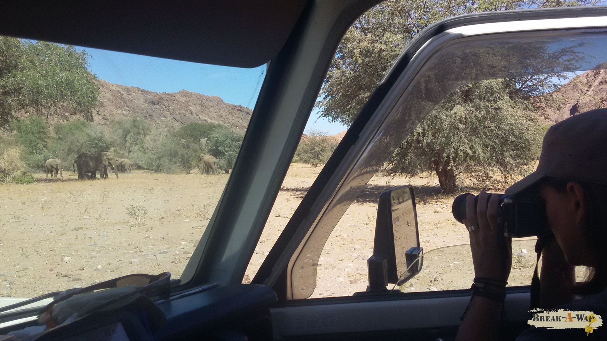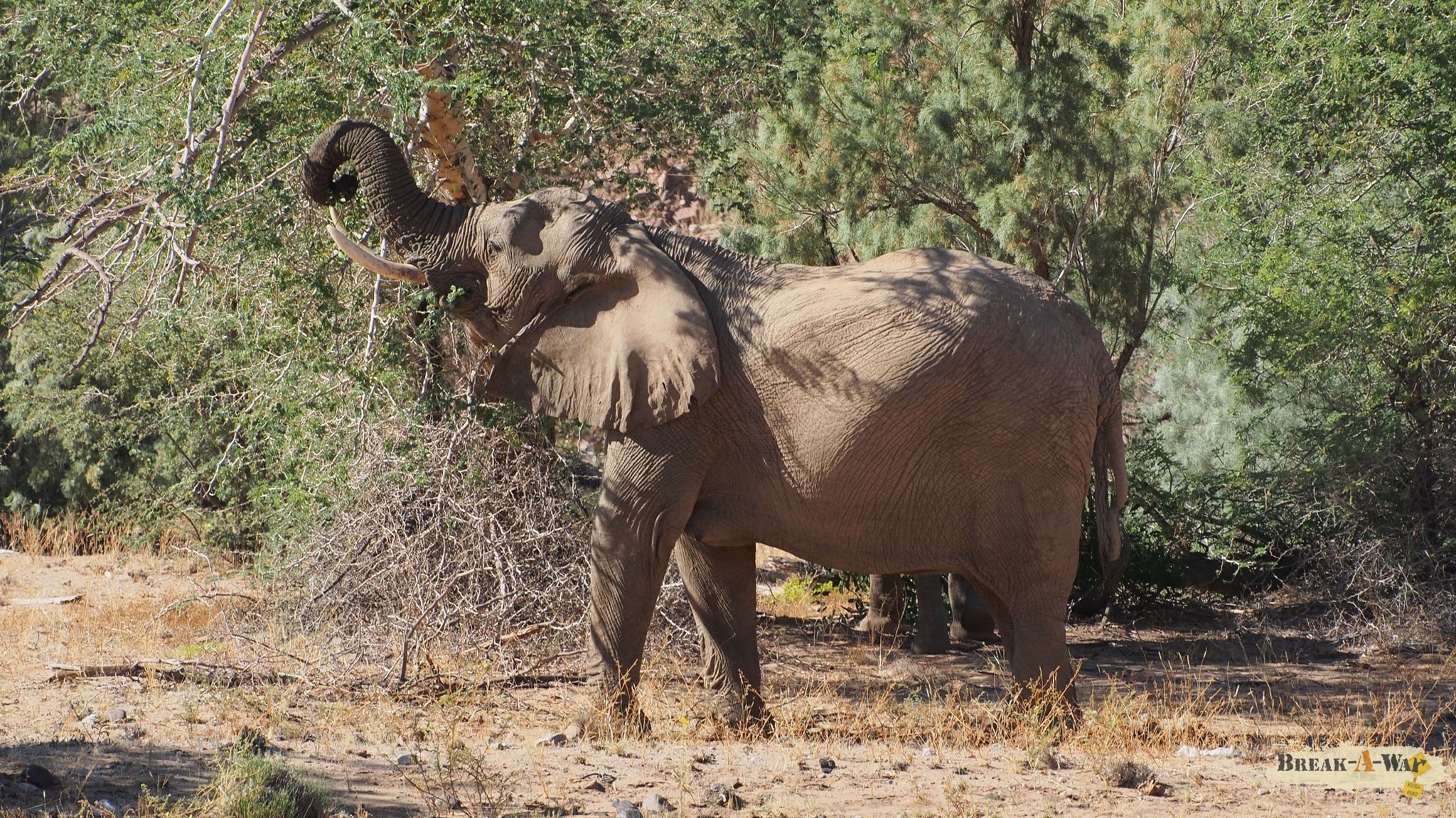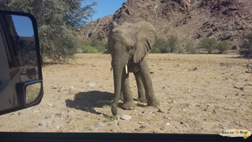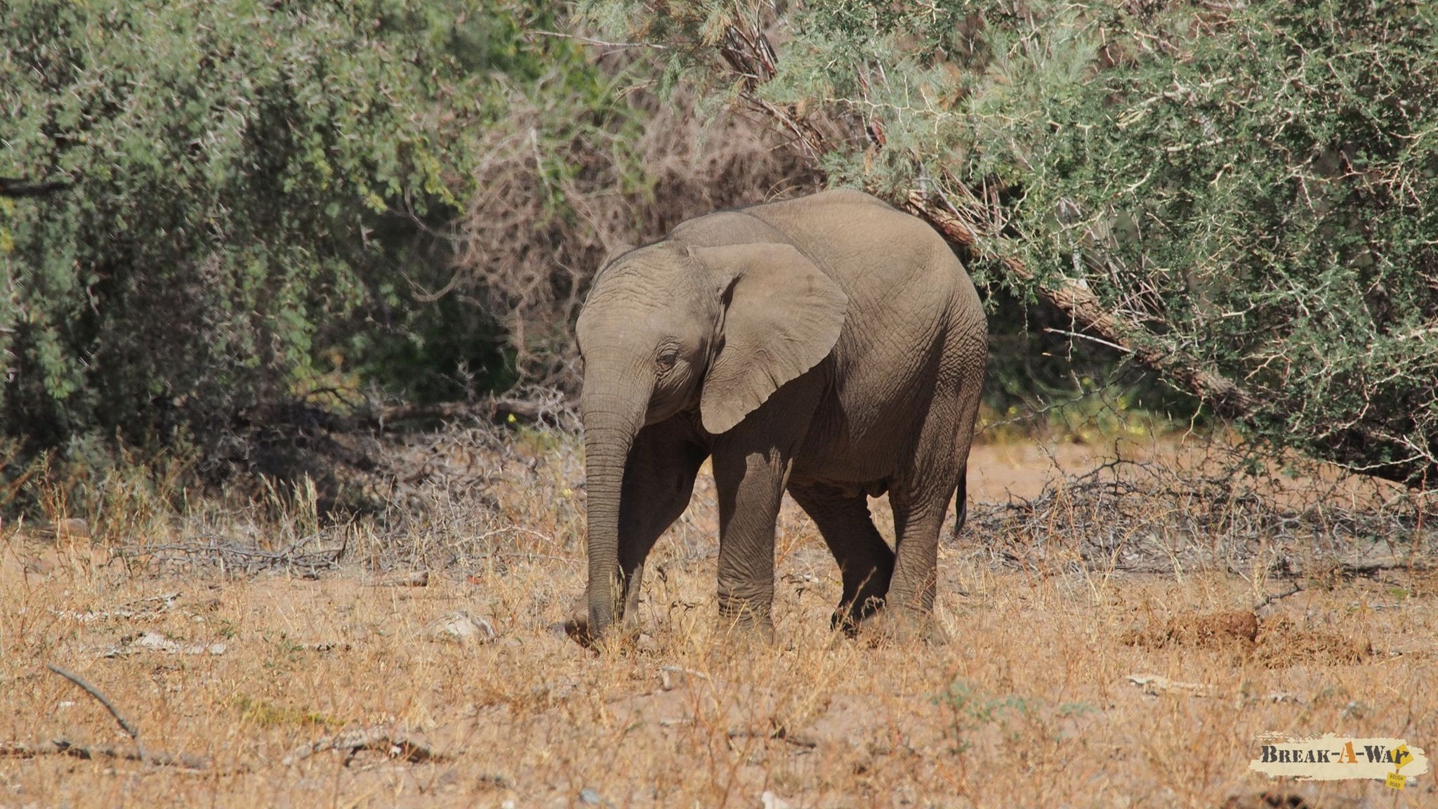 und auch der Wüstenelefanten, die hier völlig frei in der kargen