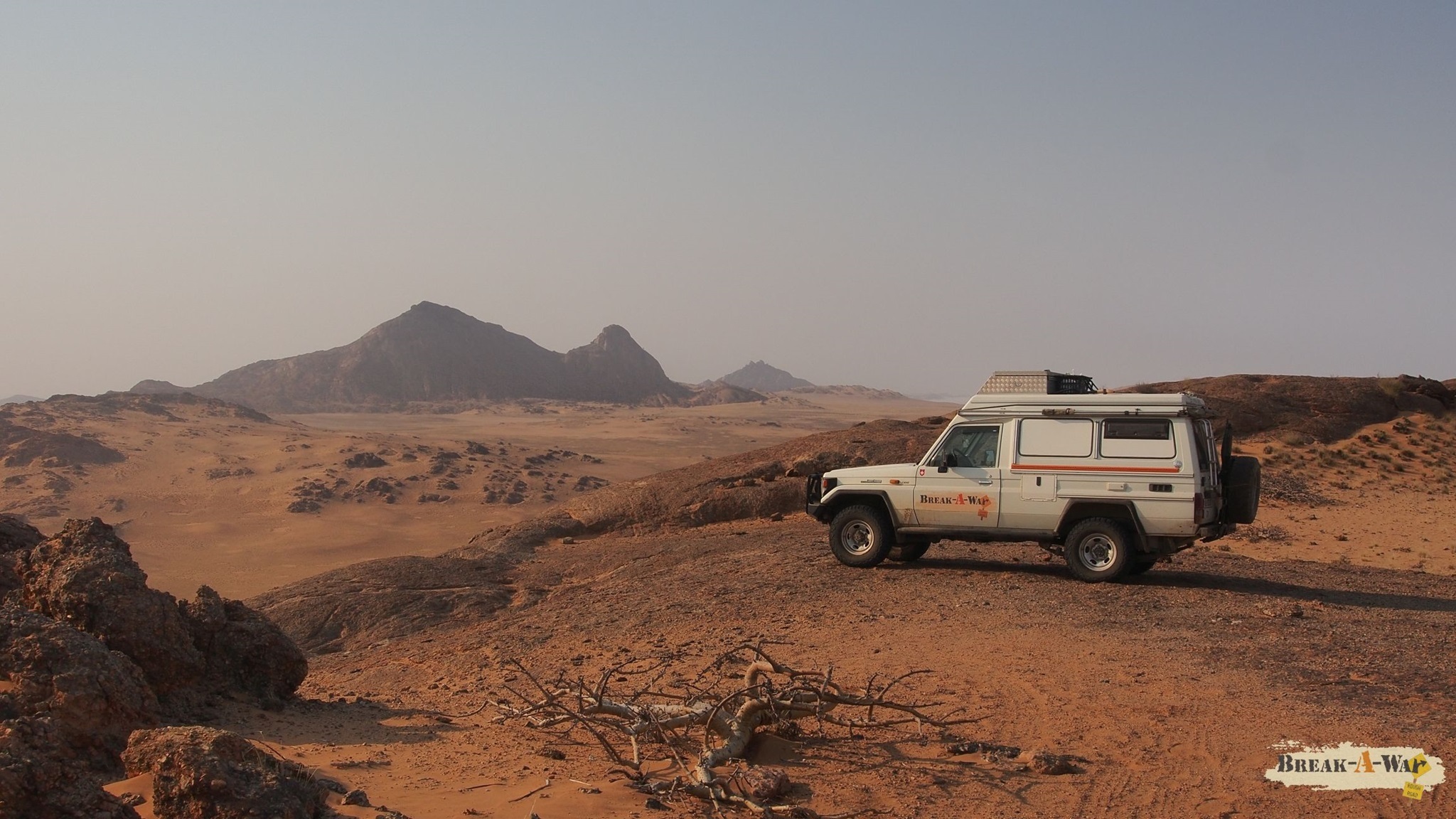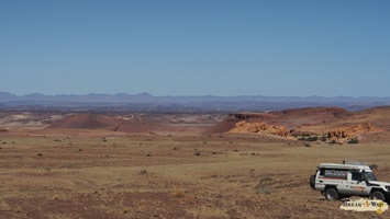 uns vor. Einzelne Tafelberge erheben sich aus der Wüste, welche die