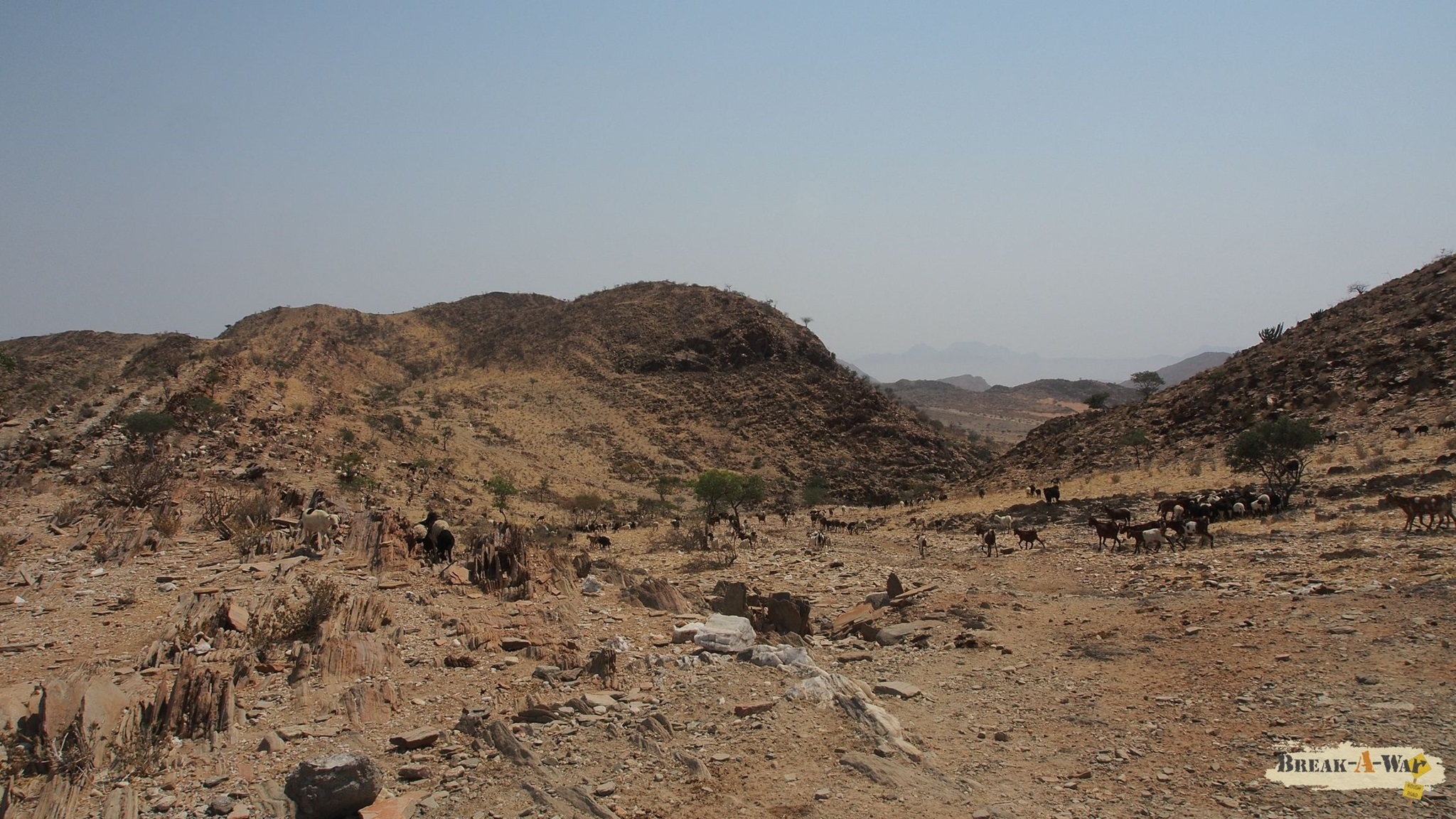 unser Lager auf, das turtelnde Himbapäärchen und ihre Ziegenherde lassen