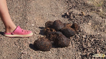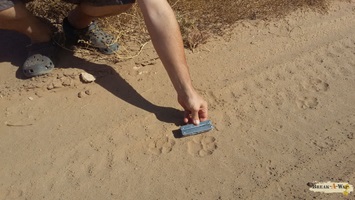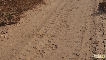 grosse Katzenpfoten, auch die Dunghaufen zeugen von grossen Tieren. Hier