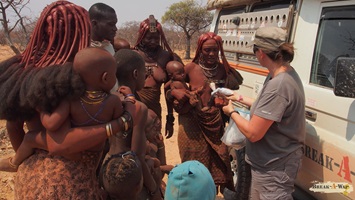 Himbas gekreuzt. Meistens winken sie scheu neben ihren Hütten, manchmal