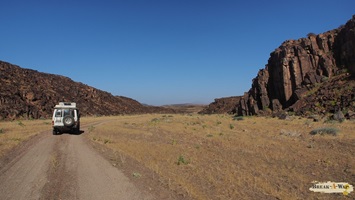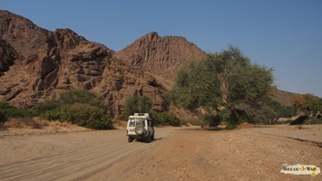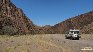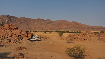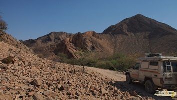 Fahrt bis zum Messumkrater, der auf halber Strecke zur Skeleton Coast liegt.