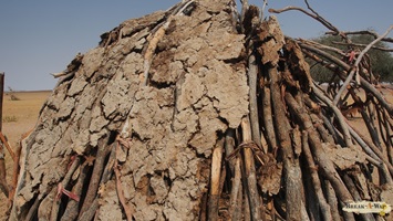 der Feuerstelle einer Himbafamilie aus dem Gebüsch. Ich weiss nicht wer