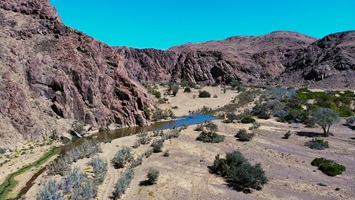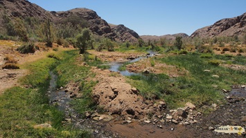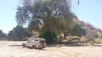 einer windigen Nacht in der Wüste folgen wir dem Messum-River auf dem