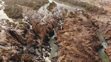 und auch der Fluss ist mehrheitlich trocken. Wir fahren auf