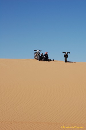 mich auf einem Dünenkamm auszuruhen. Am Anfang noch sehr zaghaft am Gas,