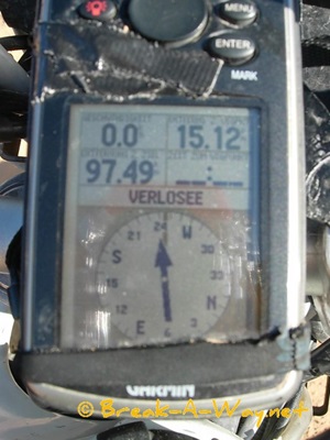 Dünengürtel, immer dem Pfeil unserer GPS folgend, welcher unerbittlich Richtung